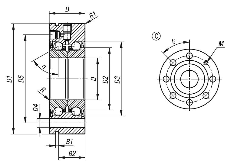 钢制轴向推力角接触球轴承,双排,带法兰,C 型