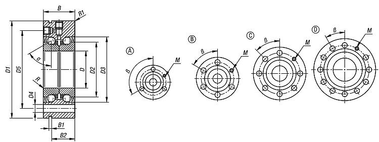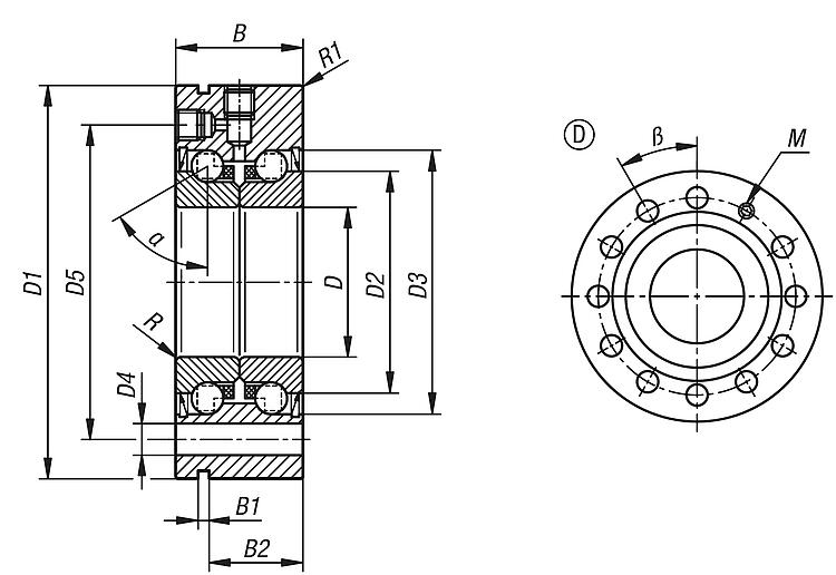 钢制轴向推力角接触球轴承,双排,带法兰,D 型