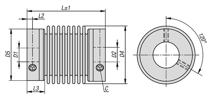 温度范围:-30 °C 至 +120 °C。装配:金属波纹管联轴器采用 H7 配合。建议配合间隙为 0.02 mm - 0.05 mm。这种配合间隙和轴颈的润滑有助于组装和拆卸。