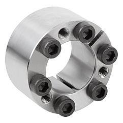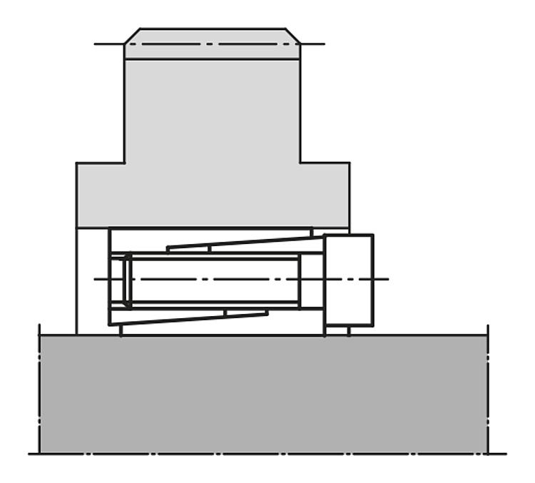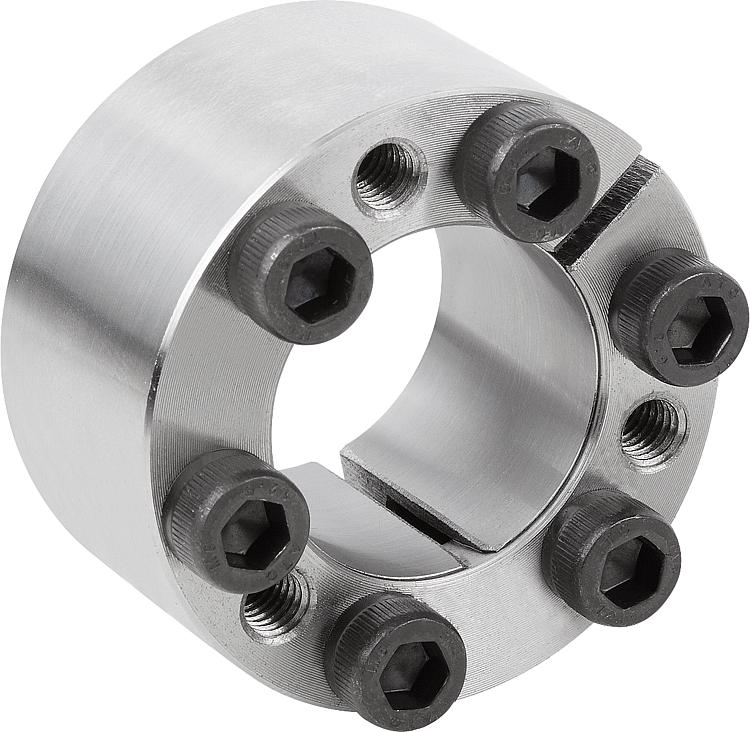 - 用于 5 至 50 mm 的轴径 - 用于中等扭矩 - 适合较小壁厚的套筒 - 可进行极少轴向移动 - 自定心装配:为轴和套筒圆锥形表面和接触处上的胀紧套稍微上油。不要使用 MoS2 或油脂。将胀紧套嵌入套筒座并移到轴上。分多个步骤成十字形以指定拧紧扭矩拧紧螺栓。