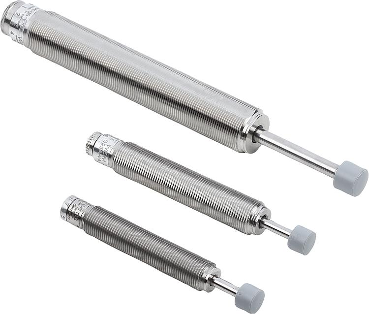 工业减振器为免维护型、安装就绪的液压元件。其具有集成的固定挡块。借助这种可调式的规格结构,可以对所需的减震进行精确调节。在装入减震器后,针对所作的调节运行几次,特别是对于旋转方面的调节,直至达到最佳的止动。