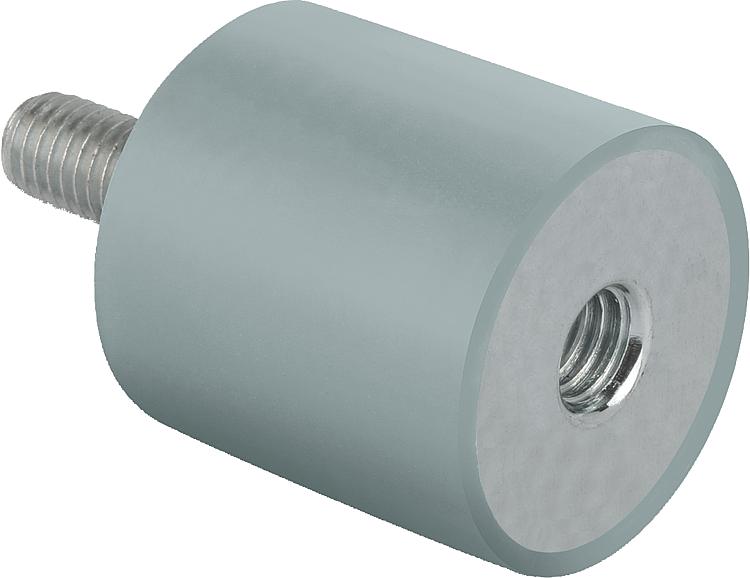 橡胶金属缓冲器,不锈钢制,圆柱形 B 类,带内外螺纹,灰色