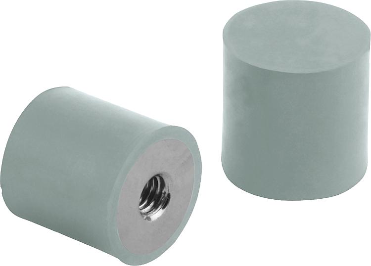 橡胶金属缓冲器,不锈钢制,圆柱形 E 类,带内螺纹,灰色