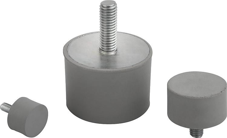 橡胶金属缓冲器,不锈钢制,圆柱形 D 类,带双面外螺纹,灰色