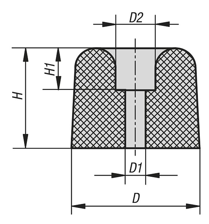 产品说明材料:天然橡胶弹性体,中等硬度,60° Shore A。提示:用于旋紧的橡胶止动缓冲器。也用作机器的设备支脚。