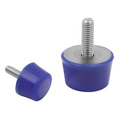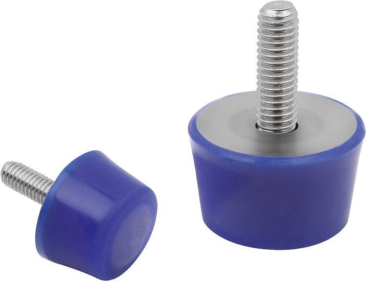 橡胶金属缓冲器,不锈钢制,圆锥形 K 类,带外螺纹 蓝色,符合 FDA 标准