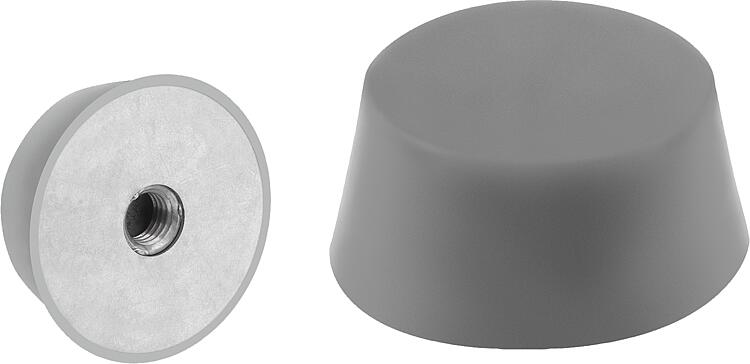 不锈钢橡胶金属缓冲器,圆锥形 EK 类,带内螺纹,灰色