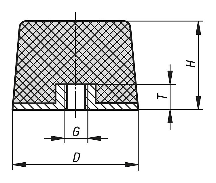Datasheet 26113-01 不锈钢橡胶金属缓冲器,圆锥形 EK 类,带内螺纹,灰色