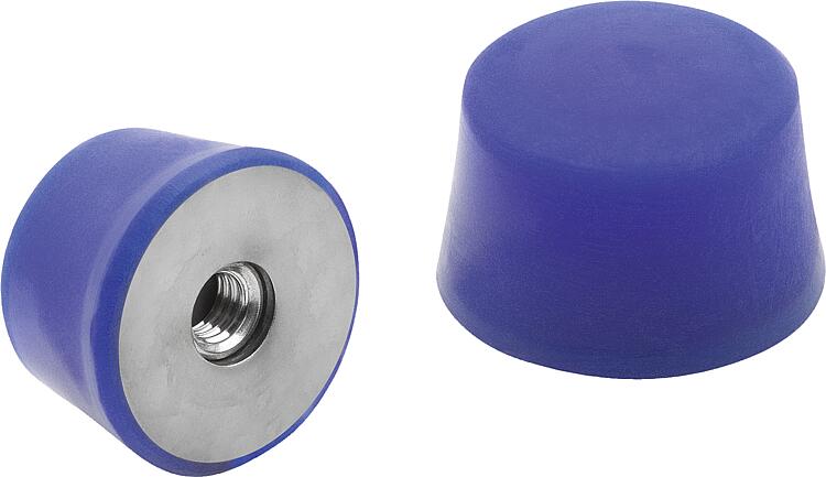 橡胶金属缓冲器,不锈钢制,圆锥形 EK 类,带蓝色内螺纹 符合 FDA 标准