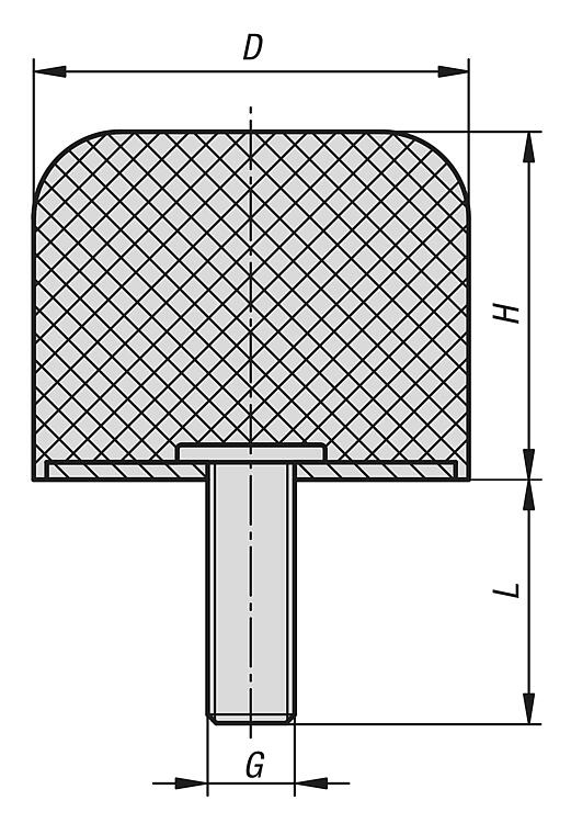 钢制橡胶金属缓冲器 带外螺纹的球形 KRA 型