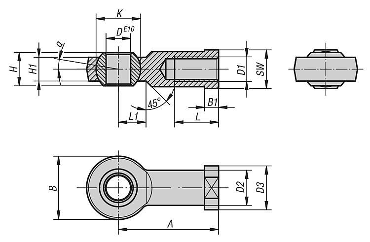 igubal® 万向接头 带滑动轴承, 内螺纹  类似  DIN ISO 12240-4