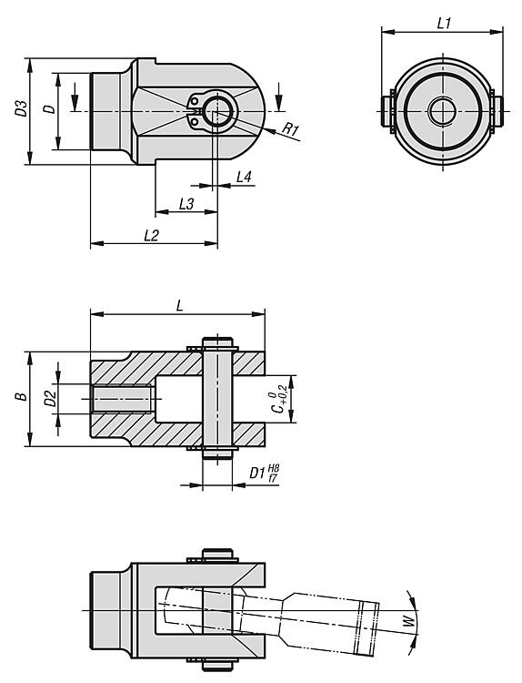 产品说明材料:叉头和钢制销钉 1.7225。规格:镀锌。提示:叉形件是作为叉头的配件而开发的。选择叉开口尺寸 C,从而可与万向接头连接。