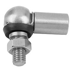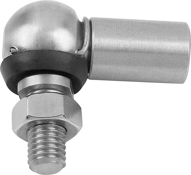 产品说明产品描述:角形接头是用于力传输的角连接并作为移动部件的连接元件。 带密封盖的角形接头尤其适用于有问题的环境条件(灰尘、润滑剂等)。使用密封盖覆盖并关闭球座和球面轴颈之间的空间。 材料:不锈钢 1.4305。