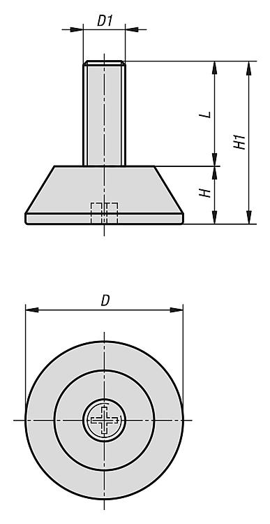 提示:带十字槽的调节支脚,在脚杯体中用作安装辅助。