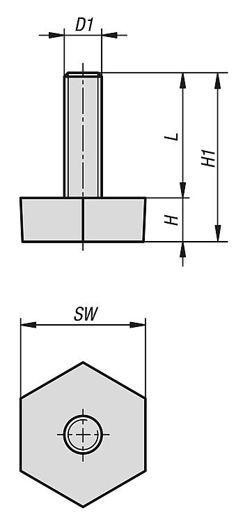 提示:带六角调节面的调节支脚。刚性规格。特点: