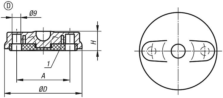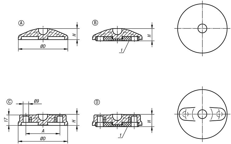万向脚由脚杯和丝杠或球头组合而成。每种脚杯可以结合各个丝杠或各个球头。 防滑板可以吸收振动力,防止万向脚滑脱。 适配丝杠参见 27810。 适配球头参见 27811。
