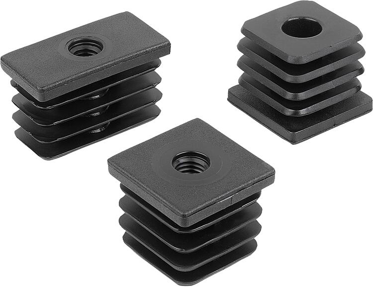 产品说明材料:尼龙主体。规格:黑色主体。提示:螺纹塞子用于轻松将调节脚和万向脚固定在管材上。装配:可以通过用手按压或用软面锤敲击来安装。
