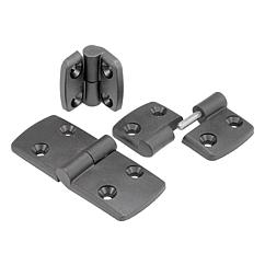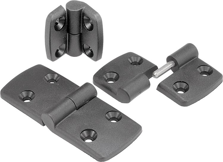 产品说明材料:热塑性塑料,玻璃纤维增强型。不锈钢轴。规格:黑色铰链。亮色轴。提示:根据要求,所有铰链还可配备导向块,以适应铝制型材的不同开槽(开槽 6、8 和 10)。它们简化了安装工作,防止铰链扭转,并令其具备更强的负载性能。