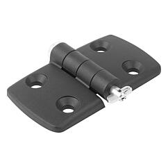 产品说明产品描述:用于平面元件和铝制型材的铰链。 无需工具即可拆卸轴销,可快速分离和连接铰链的半页。 铰链用于挡板、顶盖或框架。 可应用于室内外区域。材料:热塑性塑料剥离纤维增强型。