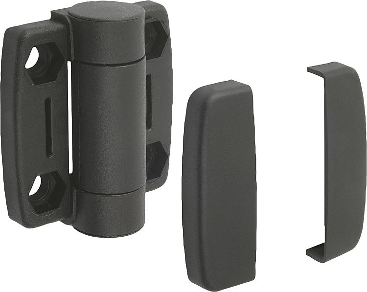 产品说明材料:玻璃纤维增强型 PA 热塑性塑料铰链和盖板。