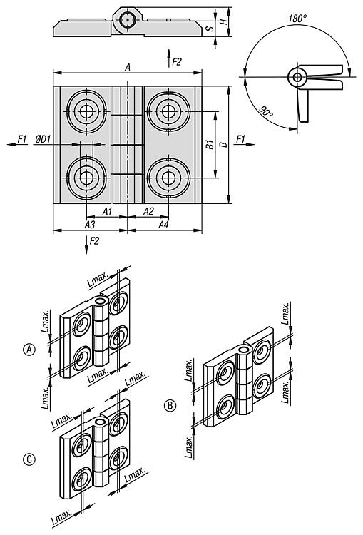 压铸锌制铰链,可调节,A 型