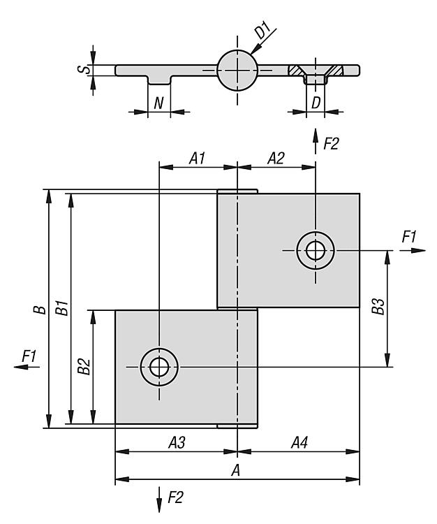 提示:用于平面元件和铝制型材的铰链,可拆卸。