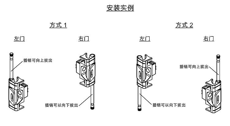 - 型号 2:右门,销钉在顶部,左门,销钉在底部