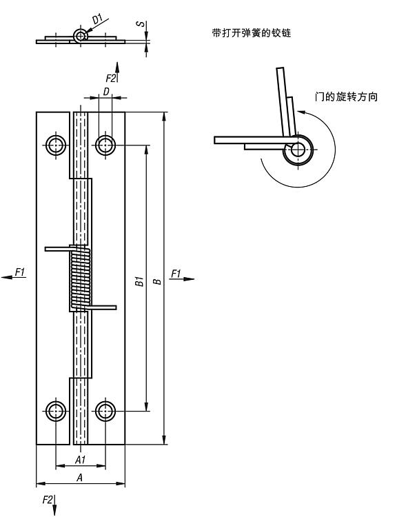 弹簧铰链 钢制和不锈钢制,75 mm