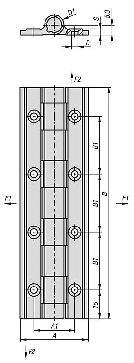 弹簧铰链 铝制型材张紧弹簧铰链,0.9 Nm,长型