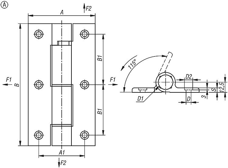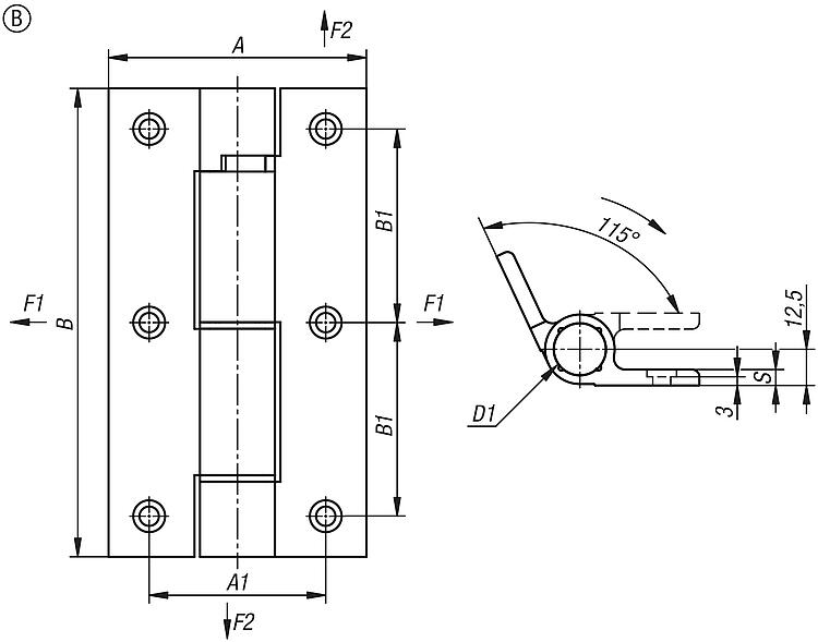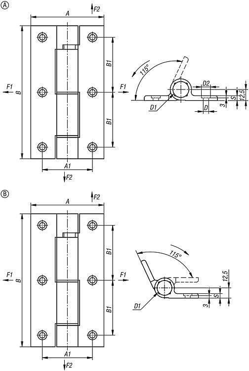 产品说明材料:铝制 6082 T5。规格:铝制,经阳极氧化处理,无色。提示:铰链具有集成阻尼。可以缓慢打开(A 型)和关闭(B 型)门和翻板。铰链还配备了提升辅助装置,使门和挡板的开启更加方便。