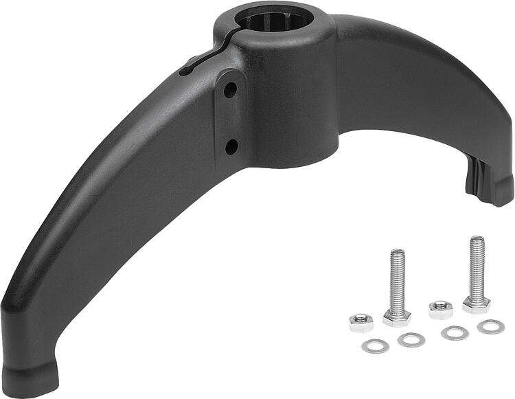 1.4301 不锈钢螺栓和螺母。 规格:黑色。 亮色螺栓和螺母。提示:圆管由两个螺钉夹紧。件管接头适用于带 M16 螺纹的脚杯。