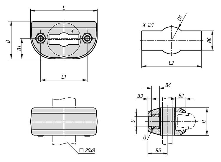 产品说明材料:热塑性塑料夹具。 不锈钢螺栓和螺母。规格:黑色夹具。 亮色螺栓和螺母。提示:单夹具与圆锥形侧导向装置 29305 和 29305-02 一起使用。直径 D1 = 12 的螺栓或 25X8 的扁铁可用于调整单夹具的高度。