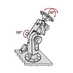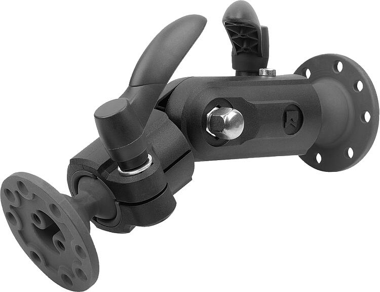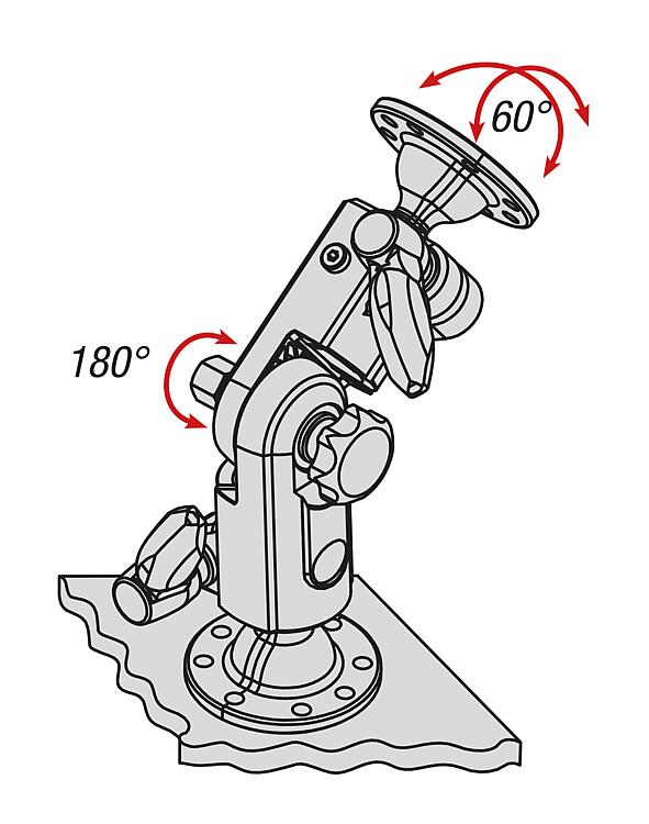 提示:防振、可锁定的监视器支架,以 15° 的分度步距进行倾斜度调节。两个旋转范围为 60° 的通用安装板。