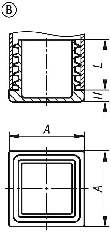 用于圆管和方管的塑料螺旋塞,B 型,正方形