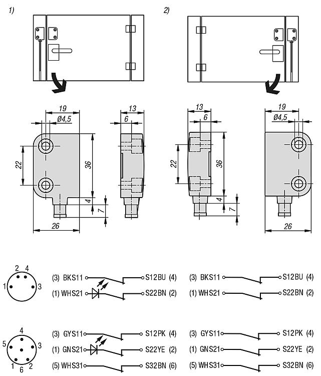 安全开关通过编码磁铁系统无接触工作。电子设备位于完全封装的外壳中。根据型号不同,开关状态由 LED 指示。