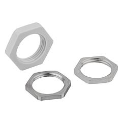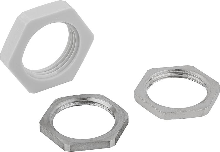 提示:六角螺母带有 DIN EN 60423 标准的公制螺纹接口,适用于可靠固定格兰头及其配件。温度范围:-40 °C 至 +100 °C(塑料)。