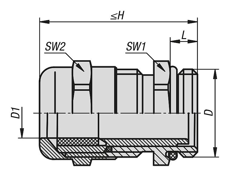 规格:亮色。提示:电缆螺纹接头带有 DIN EN 60423 标准的公制螺纹接口,密封和应力消除则通过内部弹片和密封圈来实现。