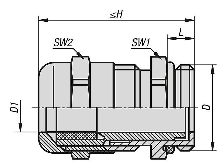格兰头带有 DIN EN 60423 标准的公制螺纹接口,适用于屏蔽线缆。密封通过内部弹片和密封圈来实现。