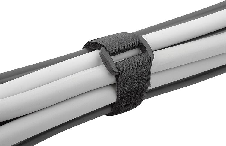 魔术贴带非常适合捆绑、整理和固定电缆和电线。将粗呢面向外的一面穿过孔眼,向后拉紧,然后牢牢夹紧。