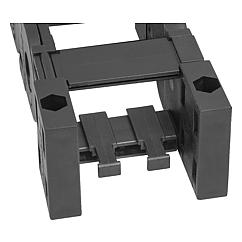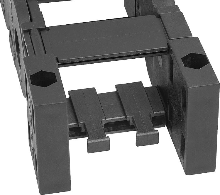 产品说明材料:聚酰胺强化玻璃纤维。规格:黑色。提示:可在内半径或外半径处将应力消除夹入到连接元件中。它们固定了插入的电缆在链条末端的位置。温度范围:-30 °C 至 +125 °C特点: