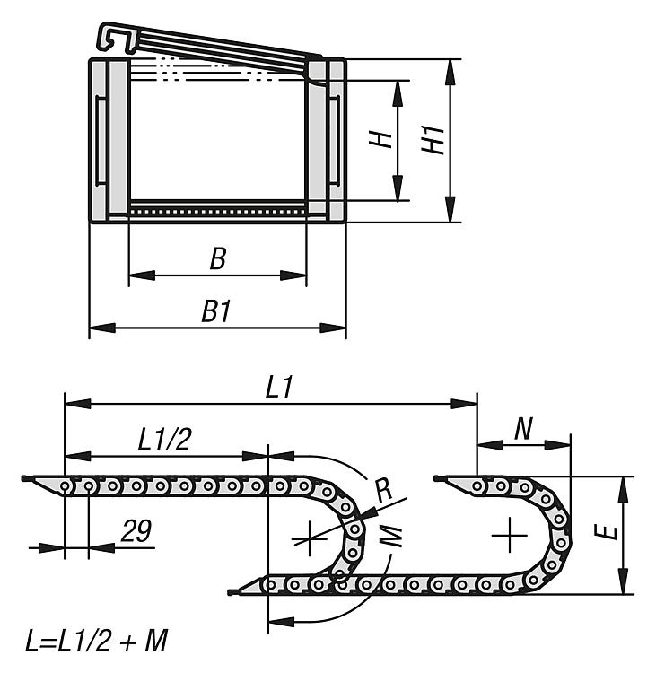 80850-10拖链 内部高度 17 mm,可在内半径上打开 |