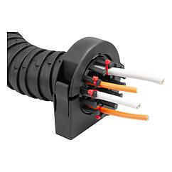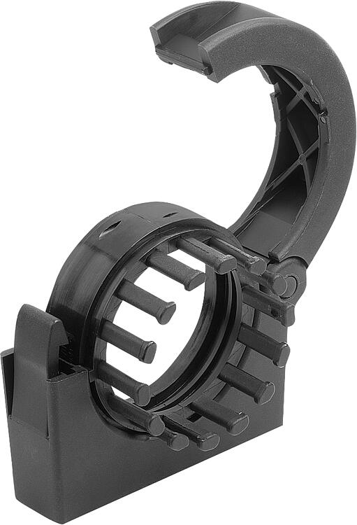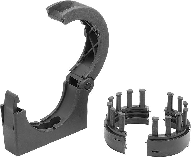 连接元件配有应力消除齿。可使用电缆扎带将管线牢牢地固定在铣齿上。温度范围:-45 °C 到 +105 °C(短时温度达 +150 °C)。装配:连接元件无需工具即可通过塑料紧固件打开和关闭。带应力消除齿的内钳由两个相同的半壳组成,通过孔销连接安装在能量链上。安装在能量链周围的卡爪插入连接件中,并通过内部轮廓确保能量链的牢固固定。特点: 下载此处为收集信息的 PDF: