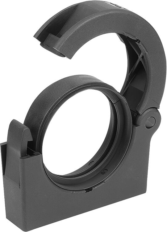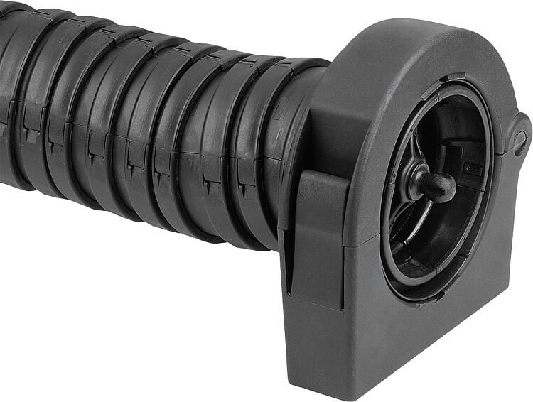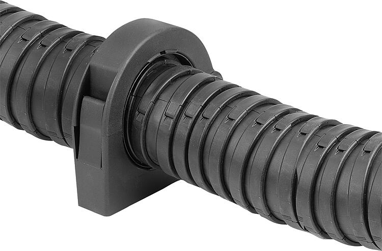 在需要固定能量链/波纹管的位置使用连接元件。温度范围:-45 °C 到 +105 °C(短时温度达 +150 °C)。装配:连接元件无需工具即可通过塑料紧固件打开和关闭。内钳由两个相同的半壳组成,通过孔销连接安装在能量链上。安装在能量链周围的卡爪插入连接件中,并通过内部轮廓确保能量链的牢固固定。特点: 下载此处为收集信息的 PDF: