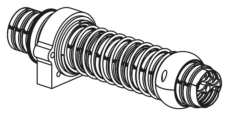 与回位弹簧和保护器相结合,可为能量链提供完整的弹簧复位系统。保护器用作弹簧的固定点。