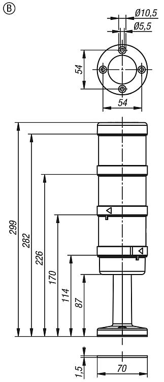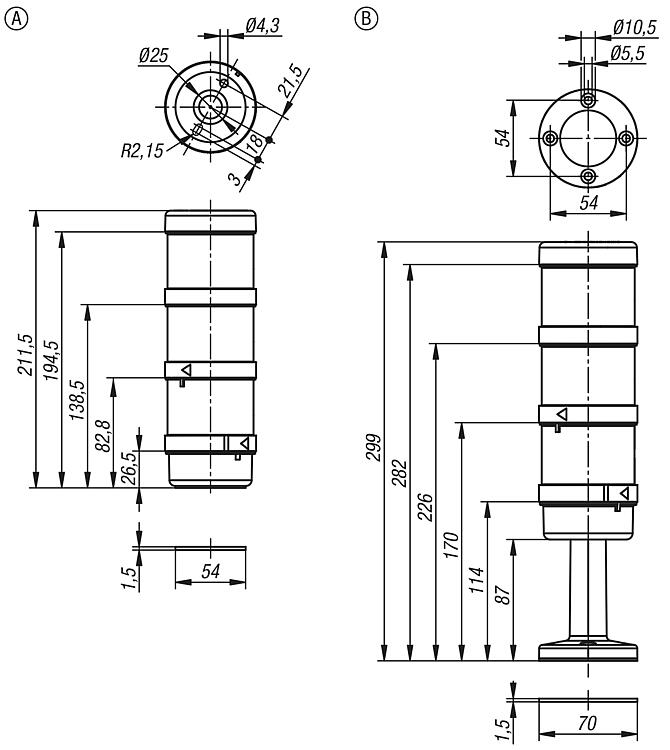 产品说明材料:聚碳酸酯照明元件。 尼龙、玻璃纤维增强连接元件。 聚碳酸酯端盖。 底座带有集成式尼龙、玻璃纤维增强管材。规格:照明元件外侧光滑,内侧带肋。颜色为绿色、黄色、红色。 连接元件、端盖、带集成式管材的黑色支座。提示:LED 信号塔,用于可视化显示机器和设备的状态和故障。这三个元件均采用最先进的 LED 技术,可发出绿色、黄色和红色的持续或闪烁信号灯,全方位可见(可通过相应照明元件上的滑动开关进行调节)。LED 信号塔采用模块化设计,直径为 70 mm。
