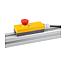 急停按钮用于在出现危险状况时手动关断机器设备。压紧旋钮被按下后即被锁住,向左右旋转即可解锁。红色按钮置于黄色底座上。便于快速发现。