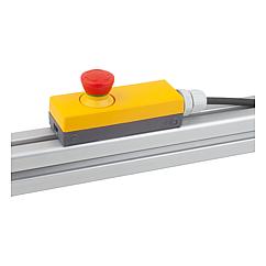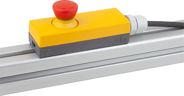 产品说明材料:塑料。 AgNi 触点连接。规格:红色压紧旋钮。 壳体为黑黄相间。提示:Minibox 为即连即用型,已完整装配壳体,含急停按钮。窄款壳体特别适合安装在铝制型材上。