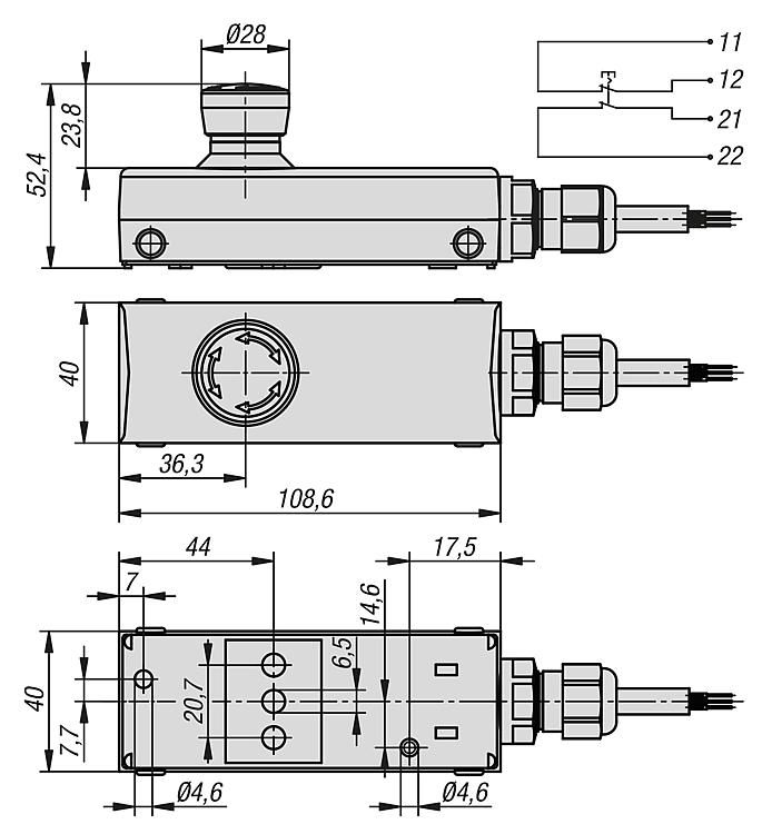 81150-20急停按钮,带"Minibox"壳体,Ø 22.3 mm,M16 线缆密封套 |