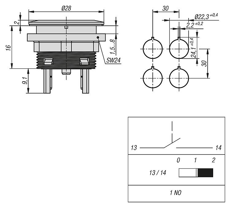 81000按键,内置款式,Ø 22.3 mm 扁插头接口,紧凑型 |