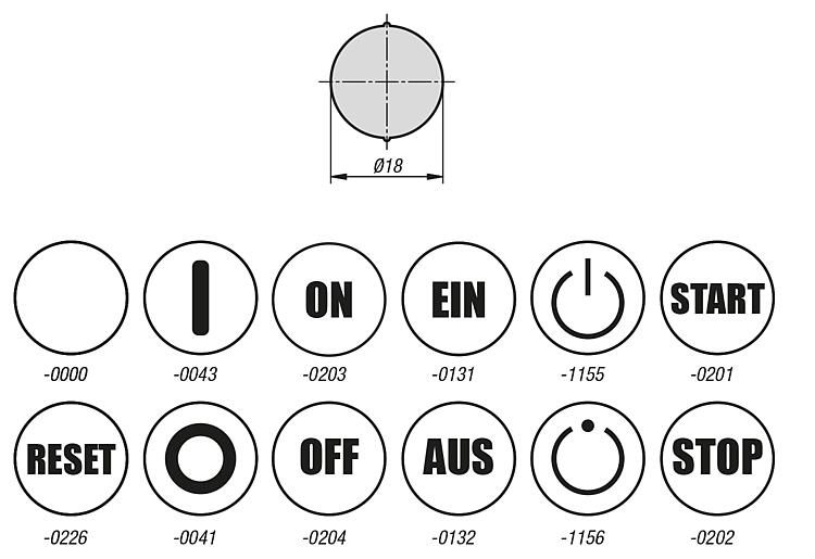 标签板未打印或采用标准打印。用于插入按钮盖或球形帽。